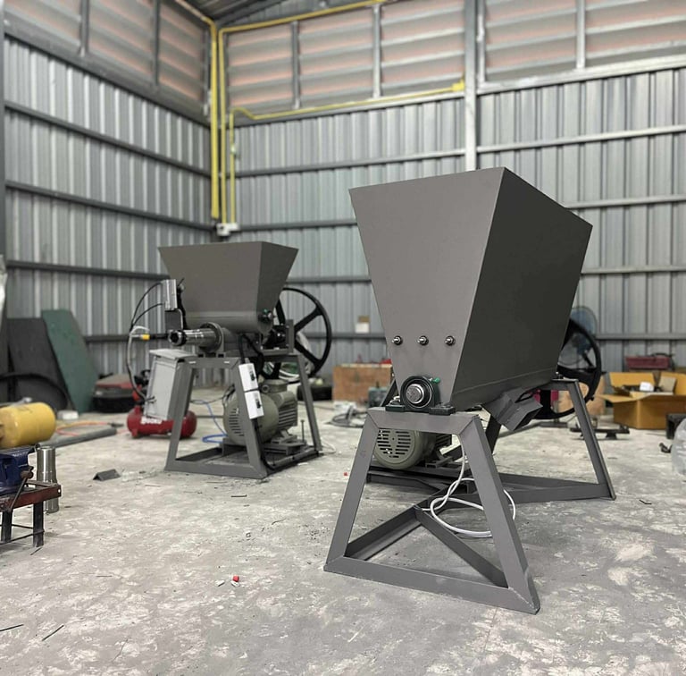 Building and operating these machines allows full control over compression, quality, and output stability. Over time, these machines proved reliable enough to become products themselves and are now sold to small producers and entrepreneurs.